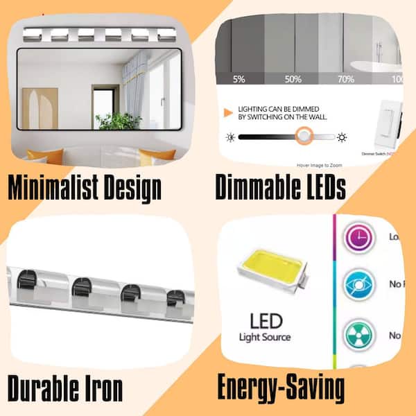 46.5 in. 6-Light Chrome LED Vanity Light Bar with Crystal Glass Shades, Bathroom Wall Sconce