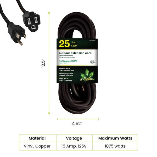 25 ft. 14/3 SJTW Outdoor Extension Cord - Black (2-Pack)