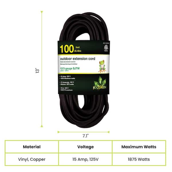 12/3 100 ft. Outdoor Extension Cord - Contractor Grade, Durable - Heavy Duty Tools - GG-14000BK - Black