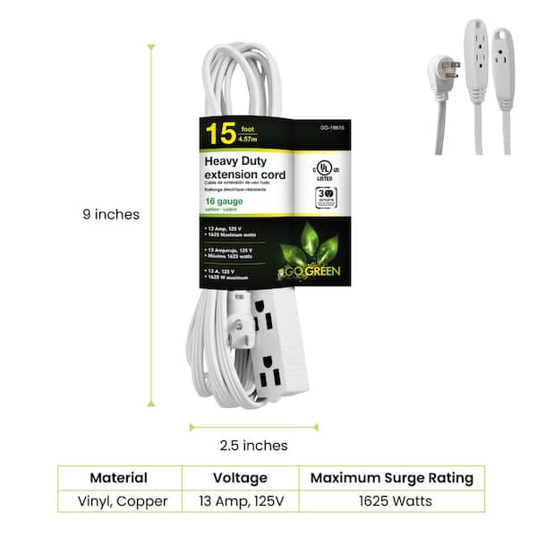 15 ft. 16/3 SPT-2, 3 Outlet Extension Cord - White