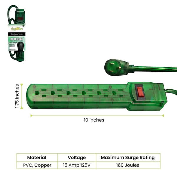 3 ft. Cord Green 6-Outlet Translucent Designer Series Surge Protector (160 Joules)