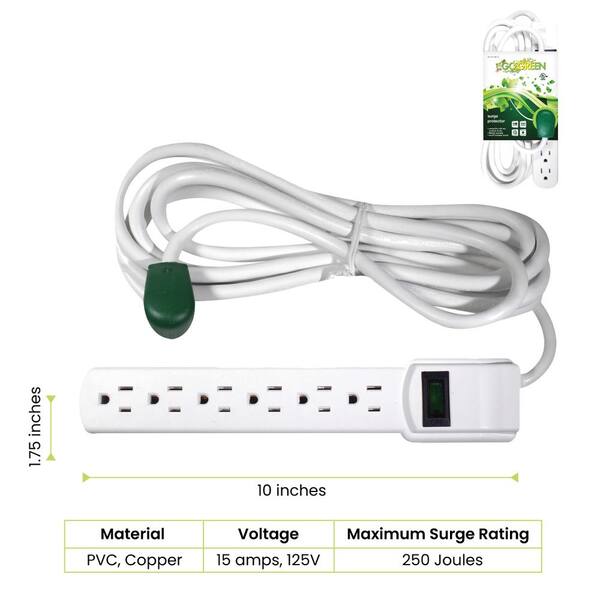 6-Outlet Surge Protector with 12 ft. Cord, White - (2-Pack)