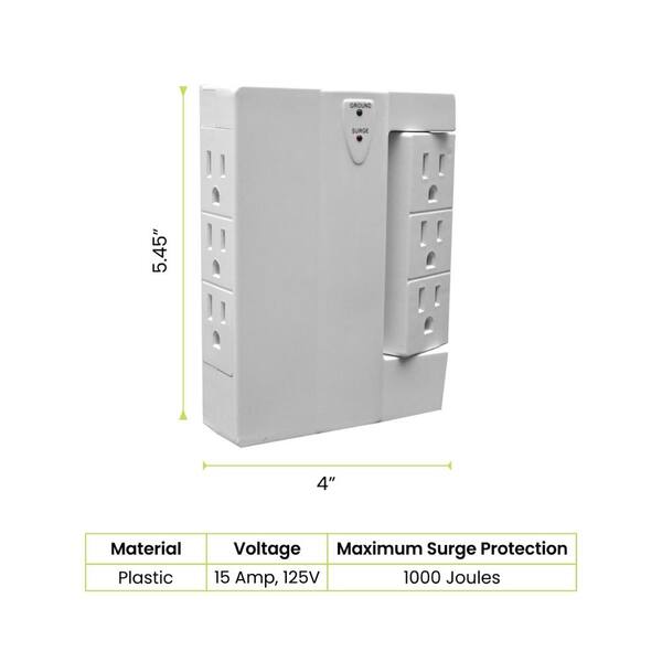 6-Outlet Swivel Wall Tap with 1,000-Joules Surge