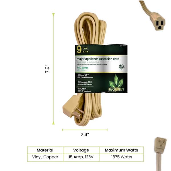 9 ft. 14/3 SPT A/C Extension Cord - Beige