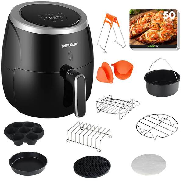 5.3 Qt. 8-in-1 Black Air Fryer with 10-Piece Accessory Set and 50-Recipes Book