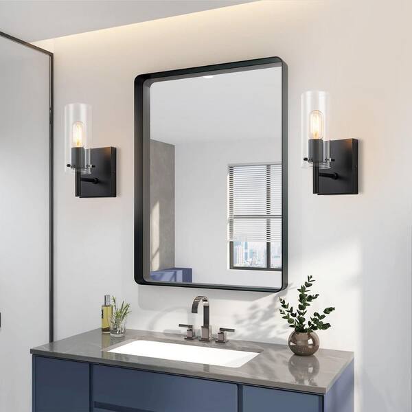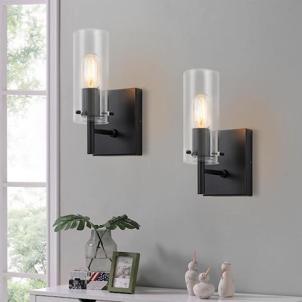 1-Light Black Modern Industrial Wall Sconces with Glass Shades (Set of 2)