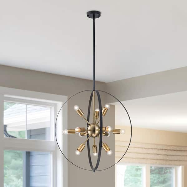 12-Light Black and Gold Modern Transitional Orb Cage Satellite Chandelier