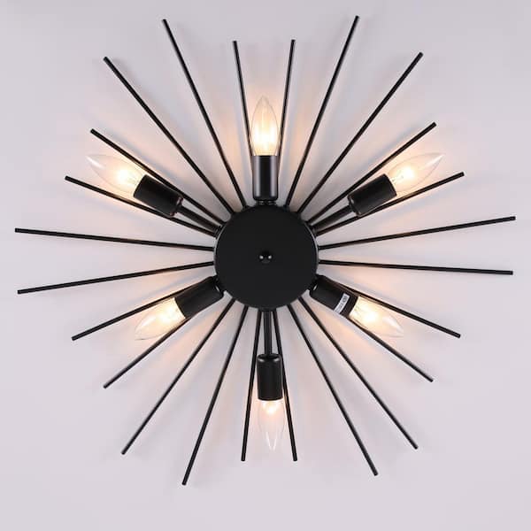 23.82 in. 6-Light Black Modern Starburst Flush Mount Ceiling Light