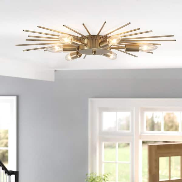 23.82 in. 6-Light Gold Modern Starburst Metal Flush Mount Ceiling Light