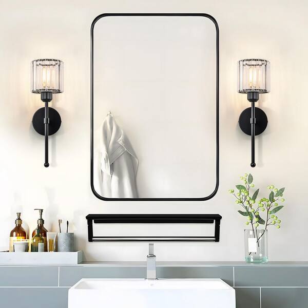 5.12 in. 2-Light Matte Black Farmhouse Wall Sconce with Crystal Shade