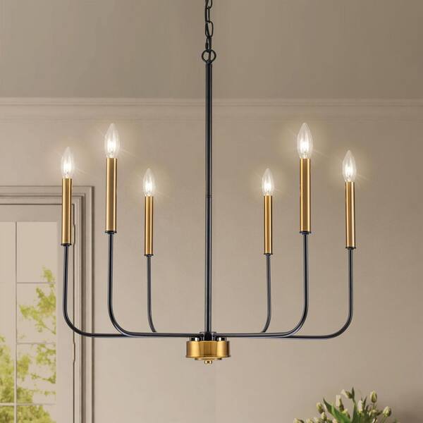 6-Light Black and Gold Farmhouse Candle Chandelier for Parlor, Reception Room, Dining Room