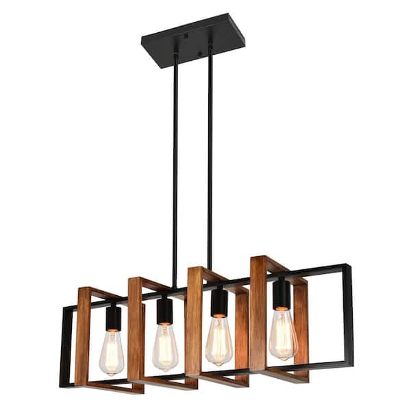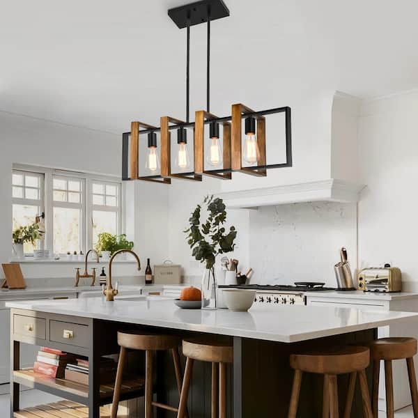 Axiora 4-Light Black Farmhouse Rectangular Wood Shell Kitchen Island Pendant Light