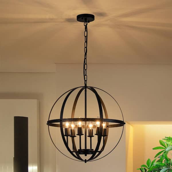 Modern/Farmhouse 6-Light Matte Black Globe Hanging Pendant Light Industrial Orb Chandelier