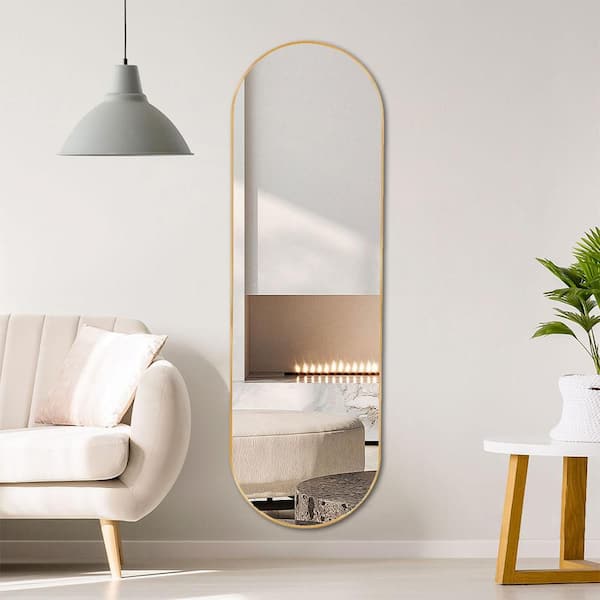 Gold 20 in. W x 63 in. H Oval Metal Full Length Mirror