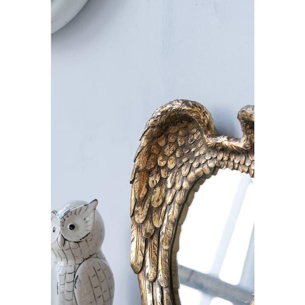 Gold 22.4 in. W x 15.8 in. H Wing Round Resin Framed Mirror for Wall