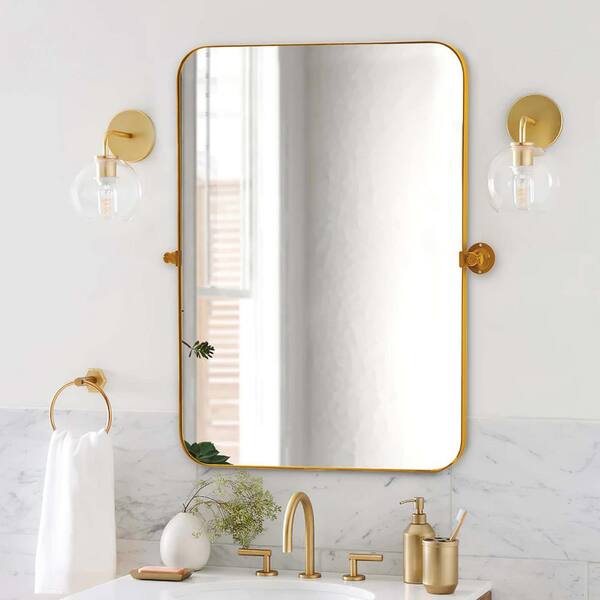 Gold 24 in. W x 36 in. H Rounded Rectangular Mirror Wall Mirror with Elegant Scalloped Design