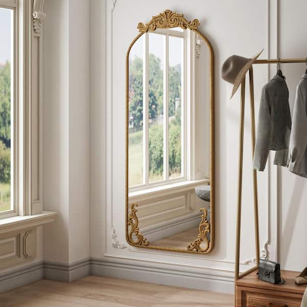 Gold 24 in. W x 58 in. H Arched Metal Framed Floor Mirror for Living Room