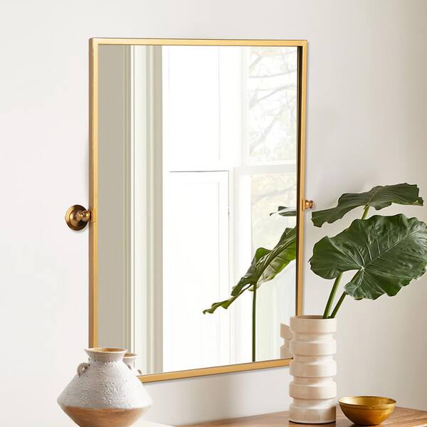 Gold 26 in. W x 38 in. H Rectangle Metal Framed Mirror, Decorative Bathroom Mirror with Elegant Rotating Hardware