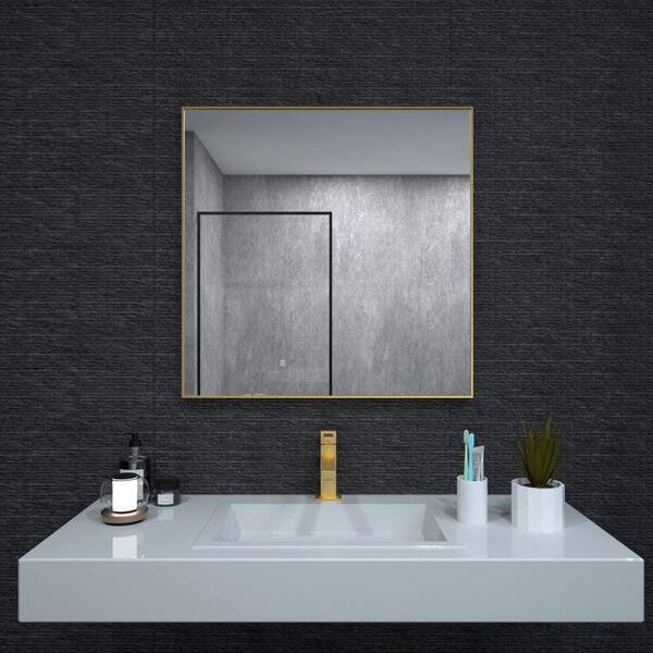 Gold 30 in. W x 30 in. H Square Metal Framed Mirror Modern Design Wall Decor Mirror for Living Room