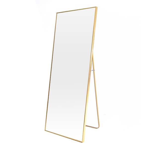Gold 32 in. W x 71 in. H Rectangle Metal Full Length Mirror with Stand, Wall Mounting for Living Room, Bedroom