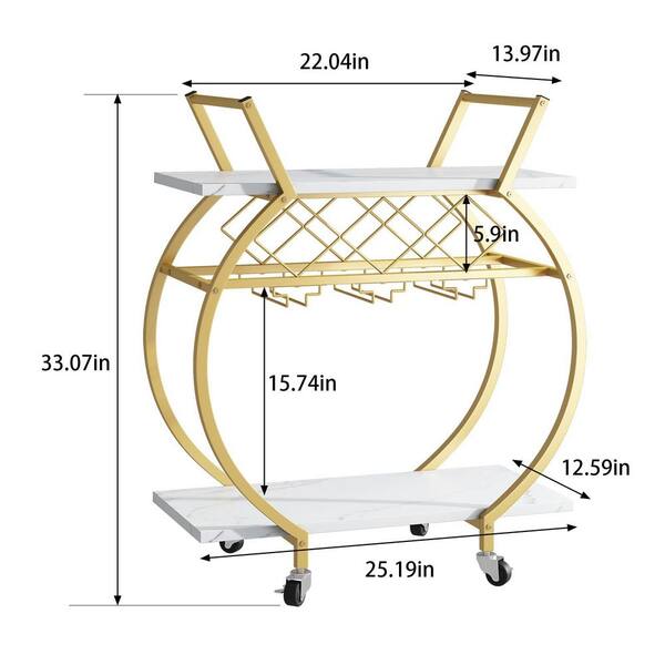 Gold Bar Carts 2 Tiers Rolling Outdoor Serving Cart with Wine Rack and Wheels Tables Serving Bars