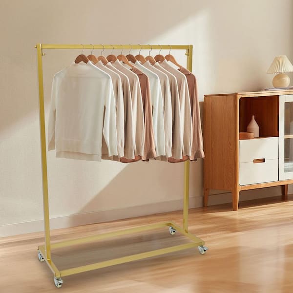 Gold Metal Clothes Rack with Wheels 39.4 in. W x 52.7 in. H Modern Floor-Standing Clothes Display Rack
