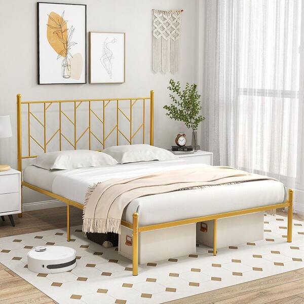 Gold Metal Frame Full Size Platform Bed Frame Heavy-Duty Metal Bed Frame with Sturdy Metal Slat Support