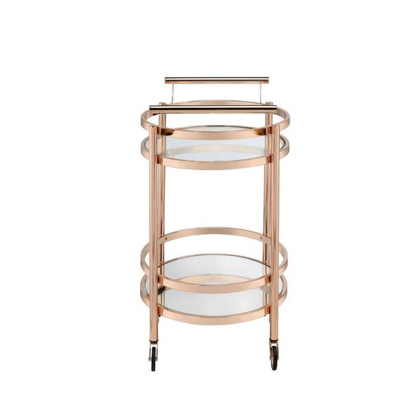 Gold Metal Serving Cart with 4-Wheels and Glass Shelf