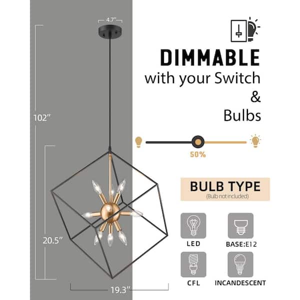 Gold and Black 9-Light Geometric Cube Pendant Light Chandelier Hanging Light for Dining Living Room