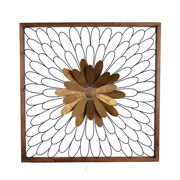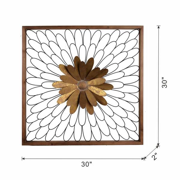Gold and Brown Iron Ashlyn Bloom Wood Framed Wall Decor, Home Decor for Living Room Kitchen Foyer Office 30 in. x 30 in.