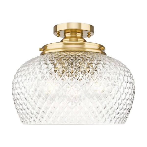 Adeline 14 in. 3-Light Modern Brushed Gold Semi-Flush Mount with Clear Glass Shade