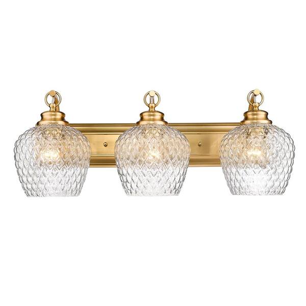 Adeline 26.25 in. 3-Light Modern Brushed Gold Vanity Light with Clear Glass Shades
