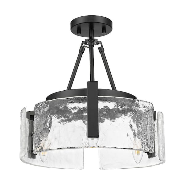 Aenon 16.5 in. 3-Light Matte Black Semi-Flush Mount with Hammered Water Glass Shade