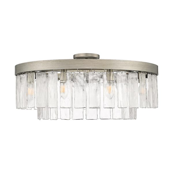 Ciara 9-Light 27 in. Semi-Flush in Peruvian Silver with Hammered Water Glass