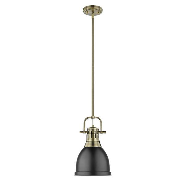 Duncan 1-Light Aged Brass Pendant and Rod with Matte Black Shade
