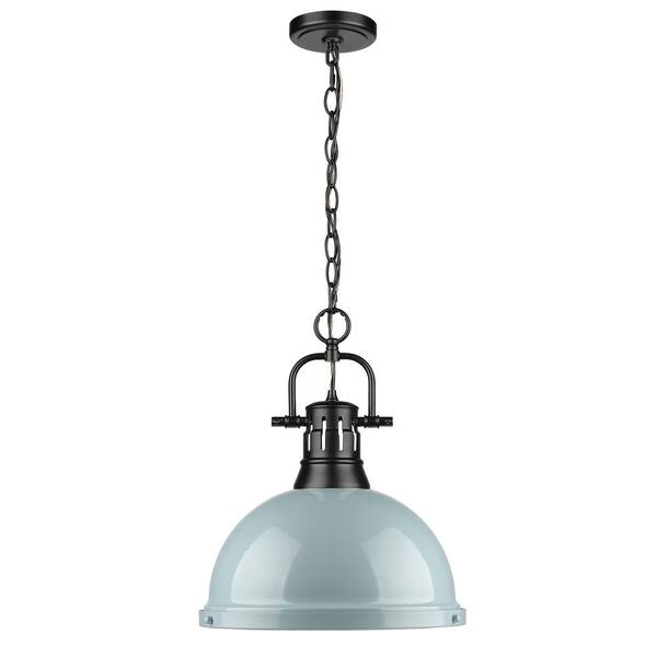 Duncan 1-Light Black Pendant and Chain with Seafoam Shade