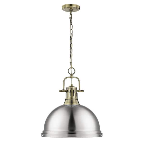 Duncan 1-Light Pendant with Chain in Aged Brass with a Pewter Shade