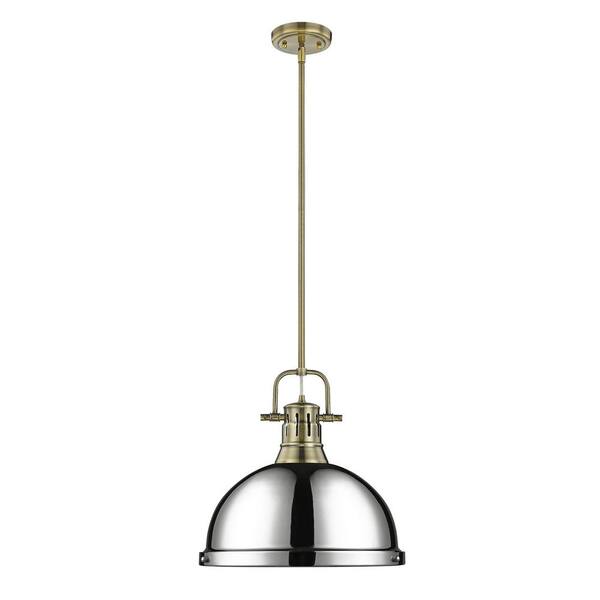 Duncan 1-Light Pendant with Rod in Aged Brass with a Chrome Shade