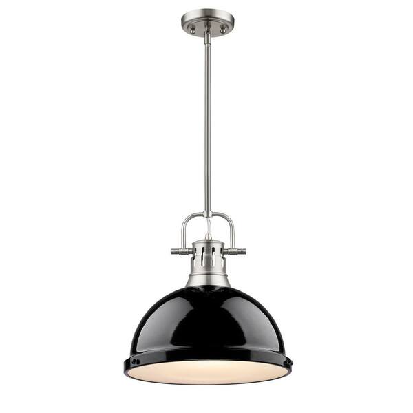 Duncan 1-Light Pewter Pendant with Rod with Black Shade