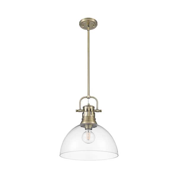 Duncan 100-Watt 1-Light Aged Brass Pendant Light with Glass Shade