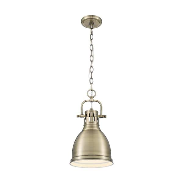Duncan 100-Watt 1-Light Aged Brass Pendant Light with Gold Shade and No Bulbs Included