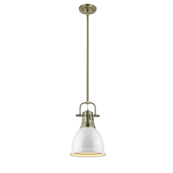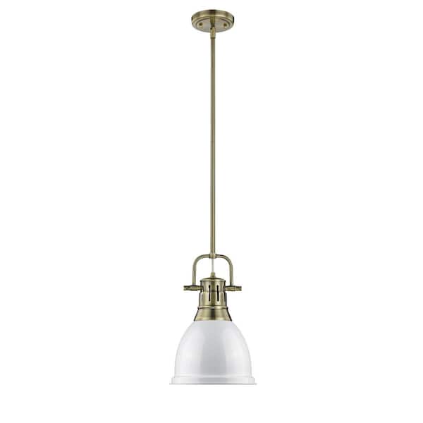 Duncan 100-Watt 1-Light Aged Brass Pendant Light with White Shade and No Bulbs Included