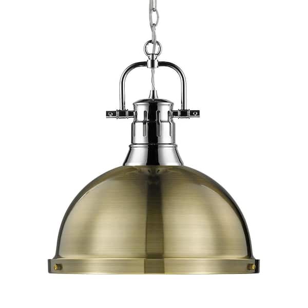Duncan 100-Watt 1-Light Chrome Shaded Pendant Light with Gold Shade and No Bulbs Included