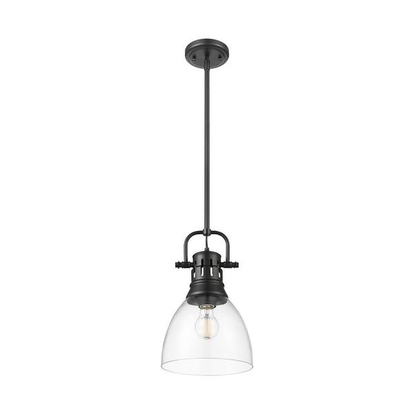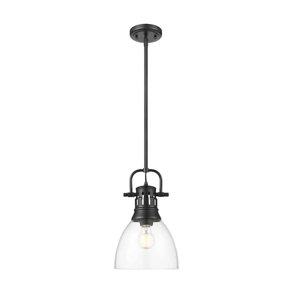 Duncan 100-Watt 1 Light Matte Black Shaded Pendant Light with Clear Glass Shade, No Bulbs Included