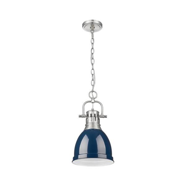 Duncan 100-Watt 1-Light Pewter Pendant Light with Blue Shade and No Bulbs Included