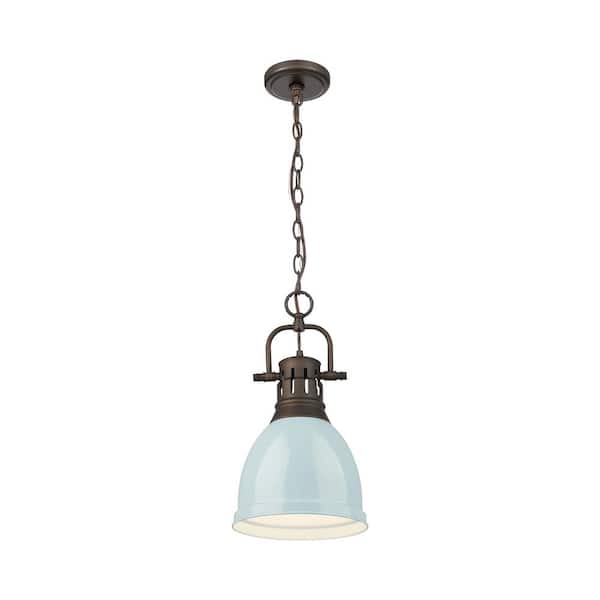 Duncan 100-Watt 1-Light Rubbed Bronze Pendant Light with Green Shade and No Bulbs Included