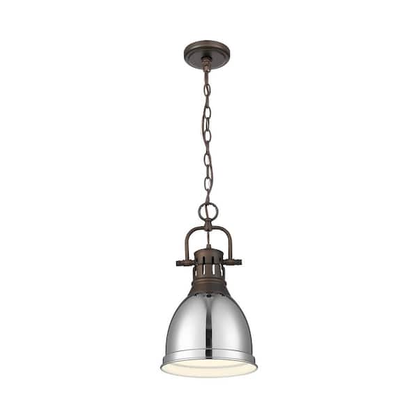 Duncan 100-Watt 1-Light Rubbed Bronze Pendant Light with Silver Shade and No Bulbs Included