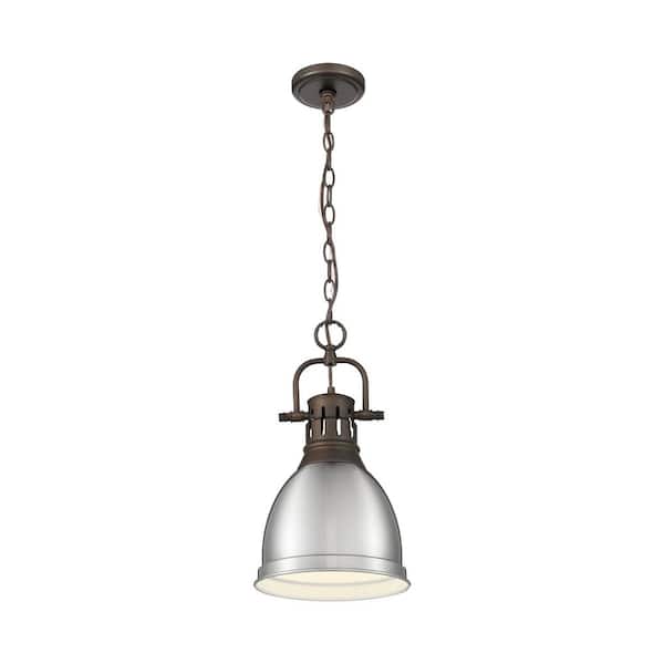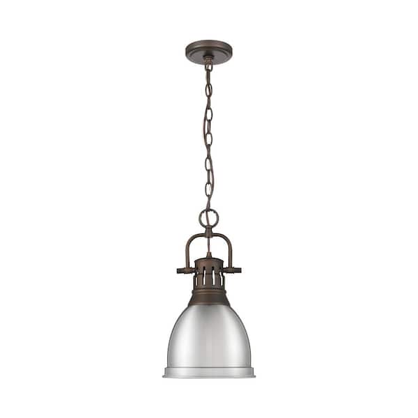 Duncan 100-Watt 1-Light Rubbed Bronze Pendant Light with Silver Shade and No Bulbs Included