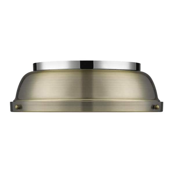 Duncan 14 in. 2-Light Chrome Flush Mount with Gold Shade and No Bulbs Included 1-Pack