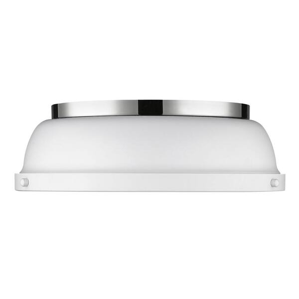 Duncan 14 in. 2-Light Chrome Flush Mount with Matte White Shade